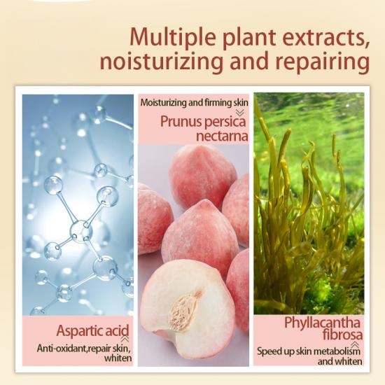 Peach essence facial sheet balance water and oil, thick and juicy, hyaluronic acid, not only hydrating but improve your skin tone, make the skin moist and fair.