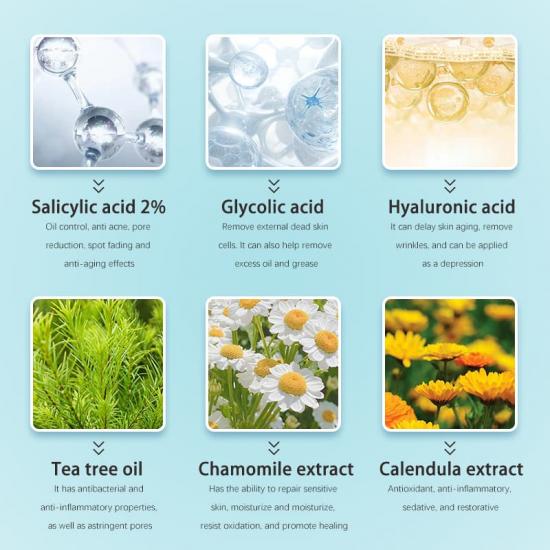 Experience the remarkable power of salicylic acid, a key component that gently exfoliates the skin, unclogs pores, and helps to combat acne. This serum effectively reduces the appearance of blemishes, while promoting a more even and radiant skin tone.