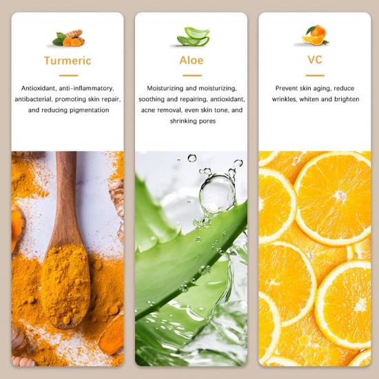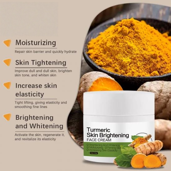 The turmeric brightening face cream features a unique formula that is enriched with potent antioxidants and nourishing botanical extracts. It deeply hydrates and moisturizes your skin, leaving it feeling supple and revitalized. The lightweight, fast-absorbing texture ensures effortless application and allows the cream to penetrate deeply into your skin, delivering optimal results.